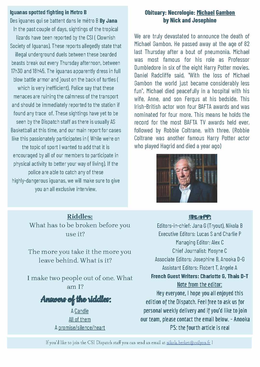 La page d'accueil de la rubrique The CSI DISPACH n'existe pas. Souhaitez-vous la créer à partir de l'article sélectionné ?