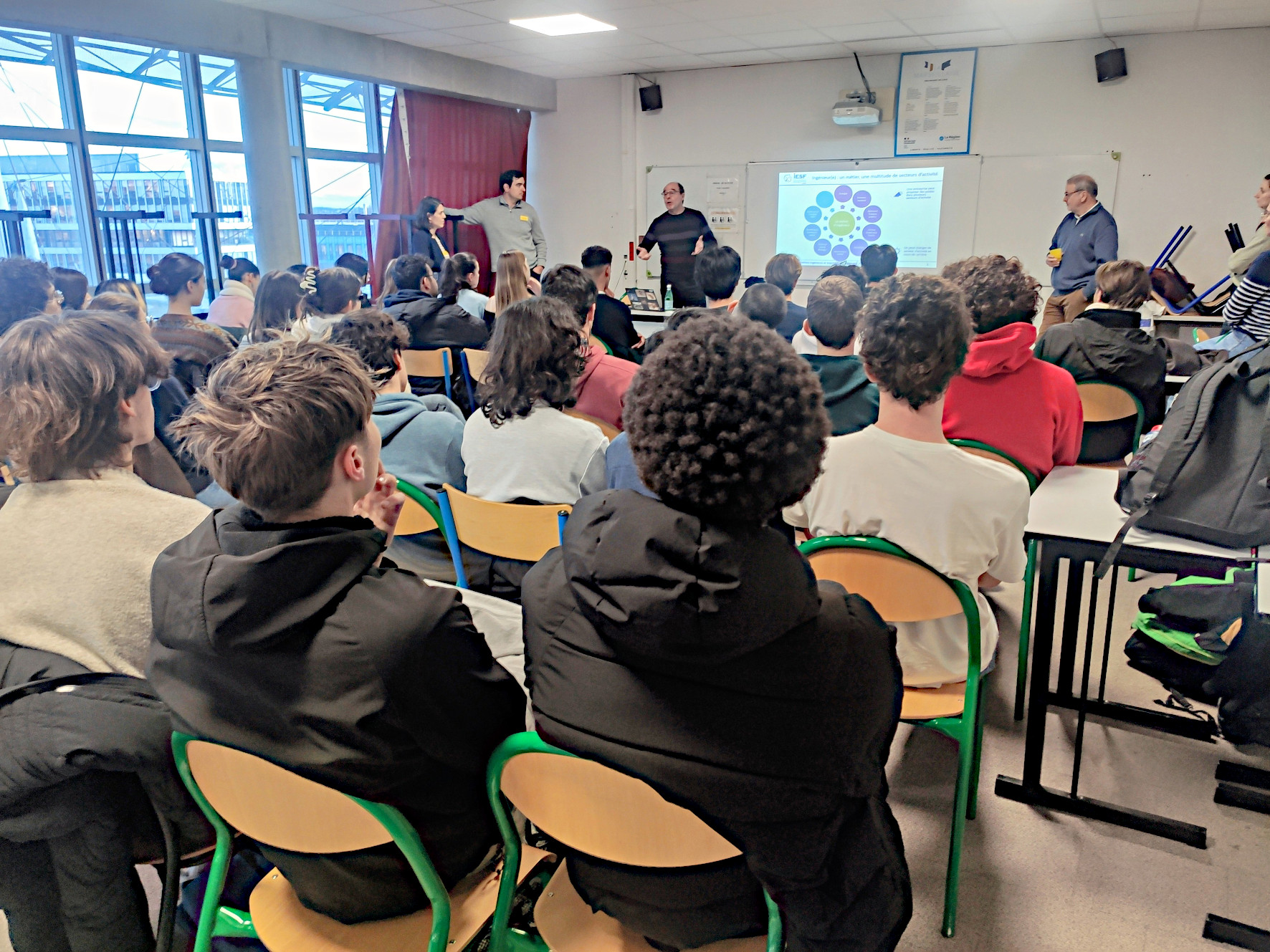Le jeudi 18 décembre en fin d'après midi, 5 ingénieurs de l'association IESF (Ingénieurs et Scientifiques de France) sont venus parler de leur métier à plus d'une quarantaine d'élèves de terminale spécialité physique chimie.